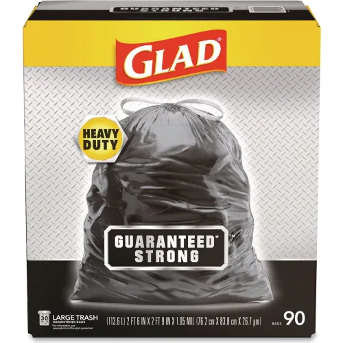 Glad® Strong Large Drawstring Trash Bags, Three-Ply, 30 gal, 1.05 mil, 30"x33", Black, 90/CT