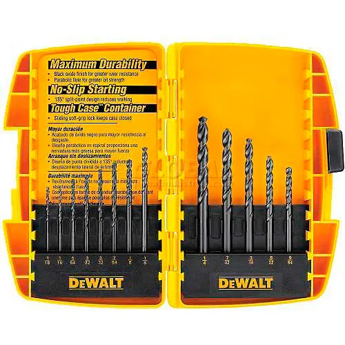 DeWALT® Drill Bit Set, DW1163, Black Oxide, 13 Pieces, 1/16" - 1/4" Split Point Bits