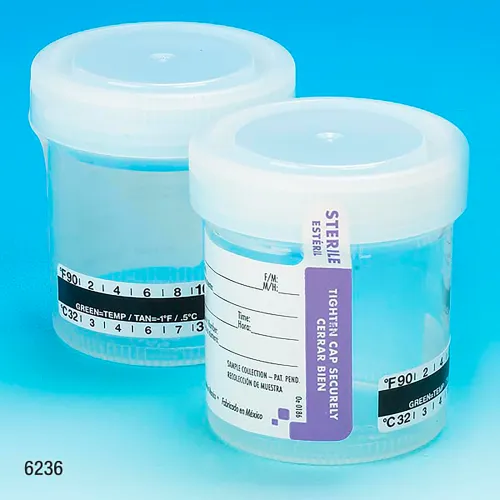 Drug Test Container, 90mL, Sterile, Tab-Seal ID Label & Celsius Thermometer Strip, 300/Pack
