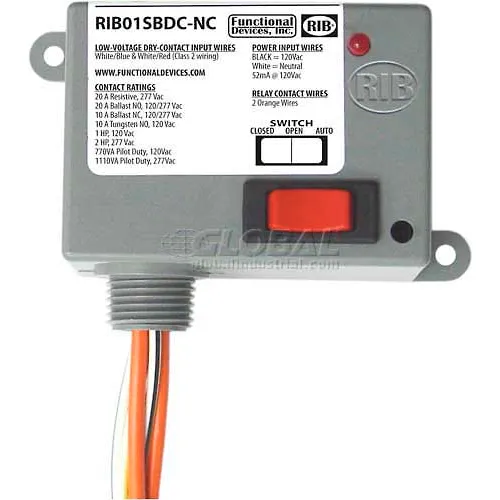 RIB® Dry Contact Input Relay RIB01SBDC-NC, Enclosed, 120VAC, 20A SPST-NC, Override