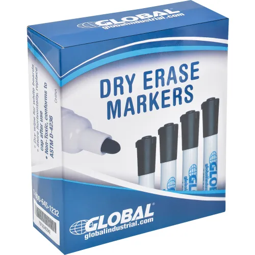 Global Industrial™ Dry Erase Markers, Bullet Tip, Black, 12 Pack