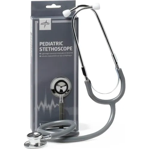 Medline Dual Head Pediatric Stethoscopes, 22"L Tubing, Gray