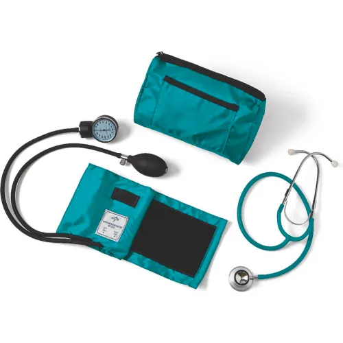 Medline Dual-Head Stethoscope & Handheld Aneroid Sphygmomanometer Combination Kit, Adult, Teal