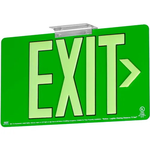 Dual-Lite DPLPM50SG Exit Sign, Green Aluminum Face & Back w/ Photoluminescent Letters, Single Face