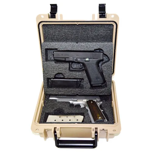 Quick Fire Multifit™ Dual Pistol Case QF340TNL Watertight, 10-11/16"x9-3/4"x4-13/16" Tan