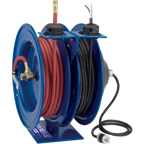Dual Purpose Electric/Air Spring Rewind Reel: 50' 3/8" I.D. Hose, 300 PSI; Less Accessory, 12 AWG