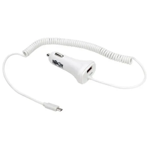 Tripp Lite Dual USB Car Charger with Quick Charge 2.0 Technology and Coiled 6-ft. Cable, White