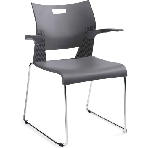 Global™ Molded Stacking Chair with Arms and Sled Base - Plastic - Shadow- Duet Series