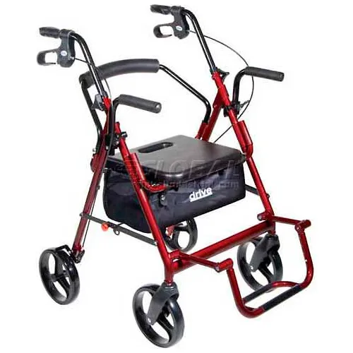 Drive Medical 795BU Duet Transport Wheelchair Chair Rollator Walker, Burgundy, 8" Casters