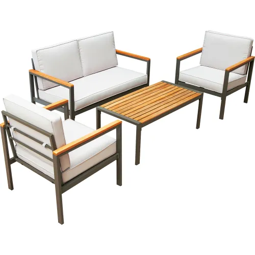 DUKAP® Ribe Aluminum 4 Piece Patio Set with Wood Accents And Beige Cushions