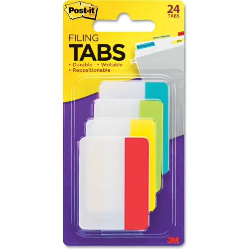 Post-it® Durable Tabs, 2" Solid, Primary Colors, 24 Tabs/Pack