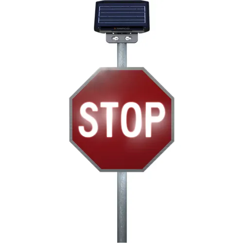 LegendViz® Dusk Till Dawn Stop Sign, Solar, 30"W x 2"D x 30"H, White/Red