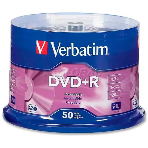 Verbatim® DVD+R, 95037, 16X Speed, 4.7GB, Branded, For Recorders/Drives, 50/Pk