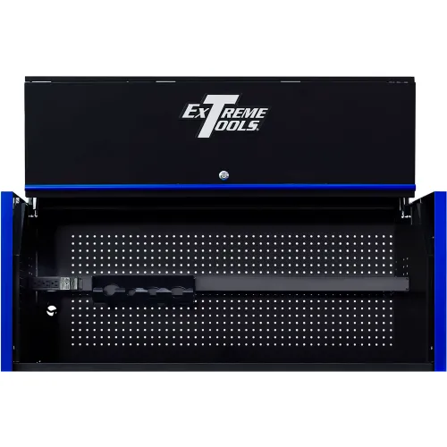 Extreme Tools DX Extreme Power Workstation Hutch, 54-5/8"W x 25"D x 22-1/4"H, Black with Blue Trim