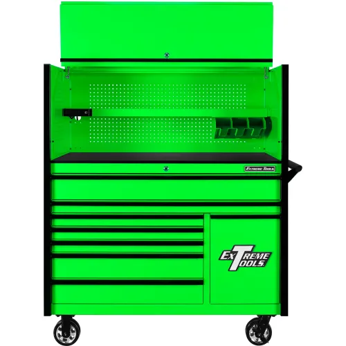 Extreme Tools DX Power Workstation Hutch & Roller Cabinet, 54-5/8"W x 25"D x 64-3/4"H, Blk/Blue Trim