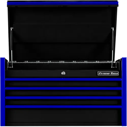 Extreme Tools DX Top Chest, 4 Drawers, 41"W x 25"D x 22-1/4"H, Black with Blue Drawer Pulls