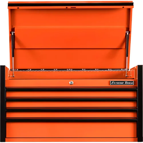 Extreme Tools DX Top Chest, 4 Drawers, 41"W x 25"D x 22-1/4"H, Orange with Black Drawer Pulls