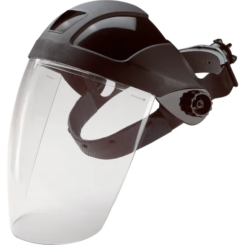 ERB® E12 Deluxe Headgear System, 4-Point Ratchet Suspension & PC Face Shield, Black - Pkg Qty 50