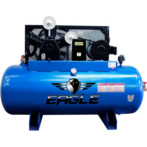 Eagle 153120H2-MS230, 15 HP, Two-Stage Compressor, 120 Gal, Horiz., 200 PSI, 44.7 CFM, 3-Phase 230V