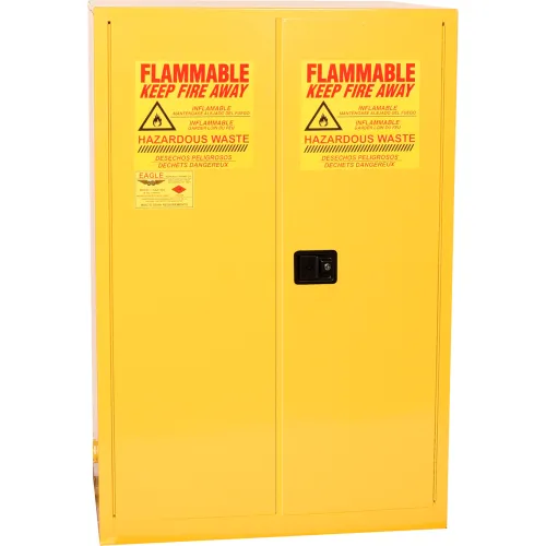 Eagle Mfg Drum Cabinet 60 Gal. Capacity Vertical Self Close Hazmat W/ Drum Suports & Rollers