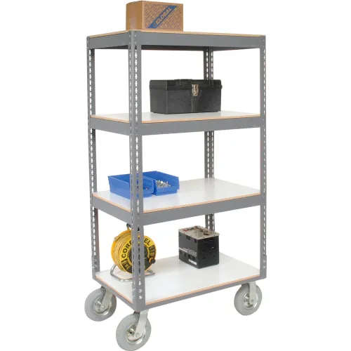 Global Industrial Boltless Shelf Truck w/4 Shelves & Pneumatic Casters, 60"Lx24"Wx68"H,Gray