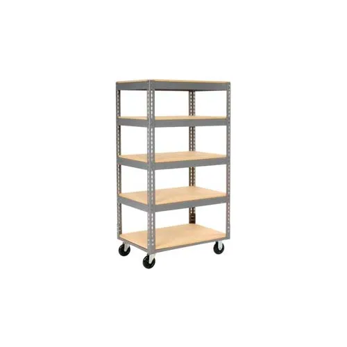 Global Industrial Boltless Shelf Truck, 5 Shelves, Poly Casters, 36"L x 24"W x 65"H, Gray