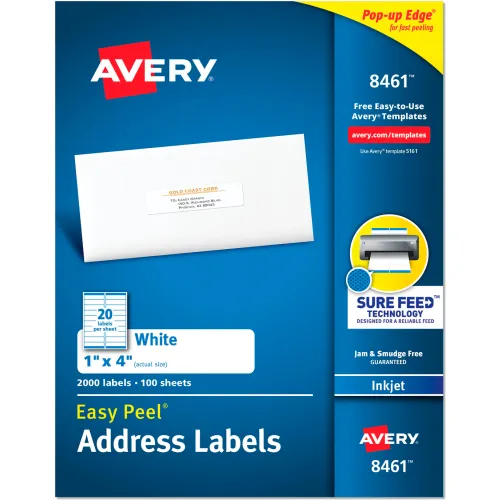 Avery® Easy Peel Inkjet Address Labels, 1 x 4, White, 2000/Box