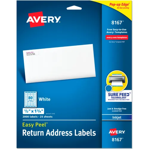 Avery® Easy Peel Inkjet Return Address Labels, 1/2 x 1-3/4, WE, 2000/Pack