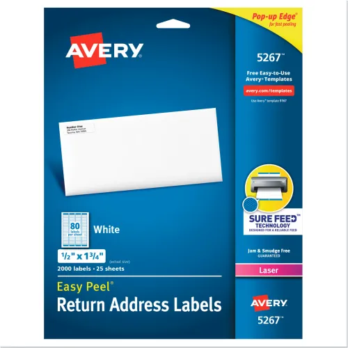 Avery® Easy Peel Laser Address Labels, 1/2 x 1-3/4, White, 2000/Pack