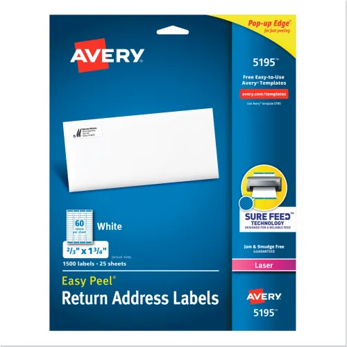 Avery® Easy Peel Laser Address Labels, 2/3 x 1-3/4, White, 1500/Pack
