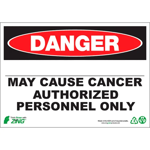 Zing Eco GHS Sign, Danger Blank, May Cause Cancer Authorized Personnel..., 14"W x 10"H, Polystyrene