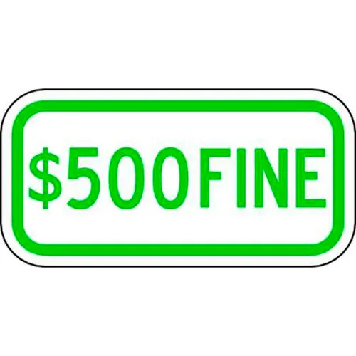Zing® Eco Parking Sign, $500 Fine, 6"H x 12"W, HIP, 1/16" Thick