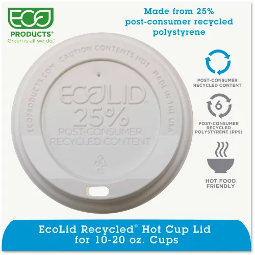Eco-Products® Eco-Lid 25% Recycled Content Hot Cup Lid, Fits 10-20 oz Cups, 1000/Carton