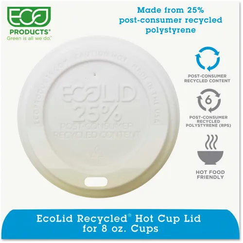 Eco-Products® Eco-Lid 25% Recycled Content Hot Cup Lid, Fits 8 oz Cups, 1000/Carton