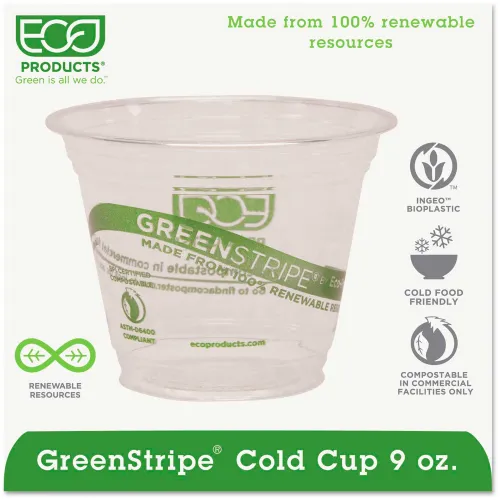 Eco-Products® GreenStripe Renewable Resource Cold Drink Cups, 9 oz., Translucent, 1000/Ctn