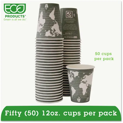 Eco-Products® World Art Renewable Resource Hot Cups, 12 oz, Gray, 50/Pack