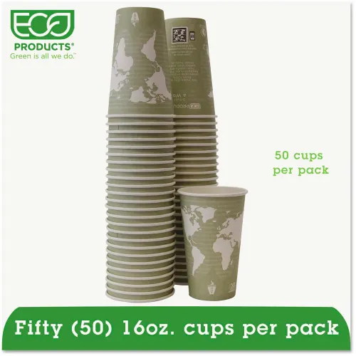 Eco-Products® World Art Renewable Resource Hot Cups, 16 oz, Seafoam Green, 50/Pack