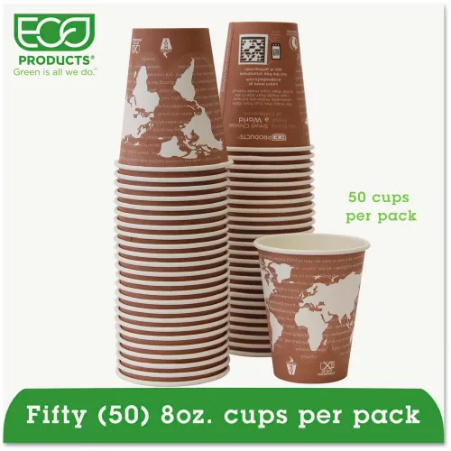 Eco-Products® World Art Renewable Resource Hot Drink Cups, 8 oz, Plum, 50/Pack