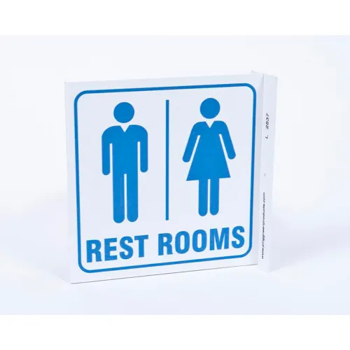 Zing Eco Public Facility L Sign, Rest Rooms, 7"W x 7"H, Blue On White