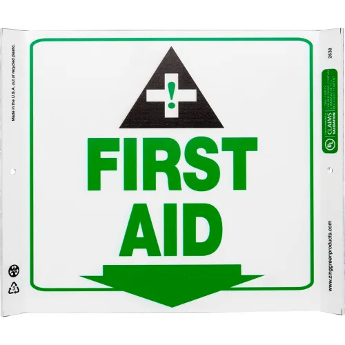 Zing Eco Safety Corner Sign, First Aid, 10"W x 10"H, Recycled Plastic