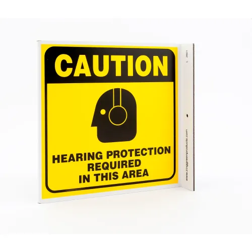 Zing Eco Safety L Sign, Caution Hearing Protection Required In This..., 7"W x 7"H, Recycled Plastic