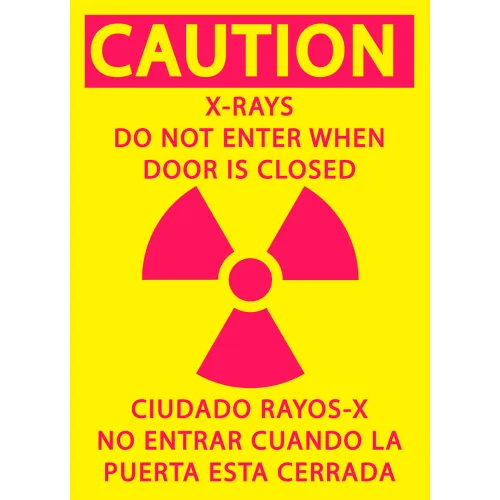 Zing Eco Safety Sign, Caution X-Ray Area, English/Spanish, 7"W x 10"H, Recycled Plastic