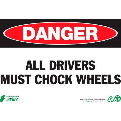 Zing Eco Safety Sign, Danger All Drivers Must Chock Wheels, 10"W x 7"H, Recycled Polystyrene