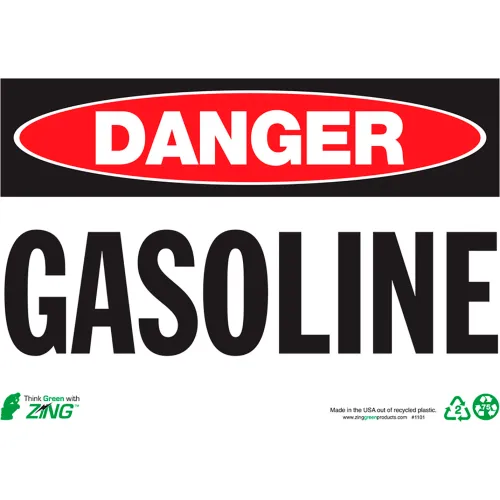 Zing Eco Safety Sign, Danger Gasoline, 10"W x 7"H, Recycled Aluminum