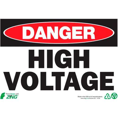 Zing Eco Safety Sign, Danger High Voltage, 10"W x 7"H, Recycled Plastic