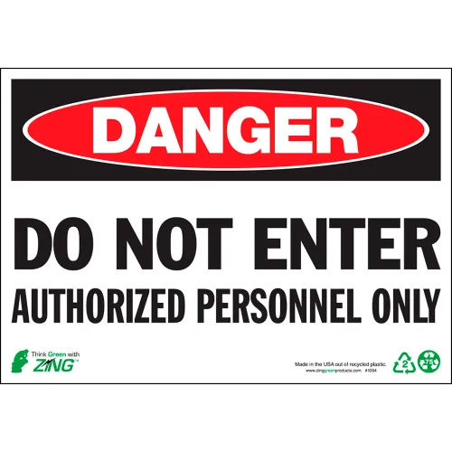 Zing Eco Safety Sign, Do Not Enter Authorized Personnel Only, 10"W x 7"H, Recycled Aluminum