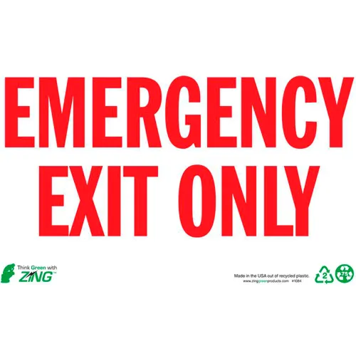 Zing Eco Safety Sign, Emergency Exit Only, 10"W x 7"H, Recycled Plastic
