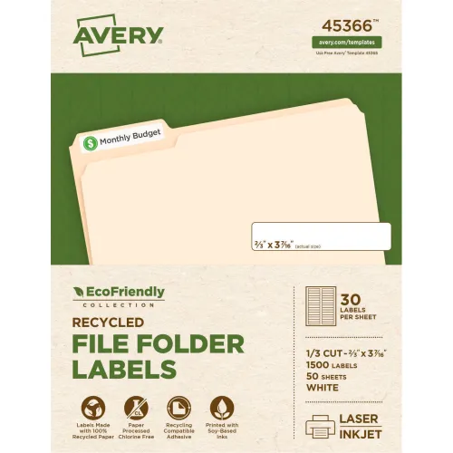 Avery® EcoFriendly Labels, 2/3 x 3-7/16, White, 1500/Pack