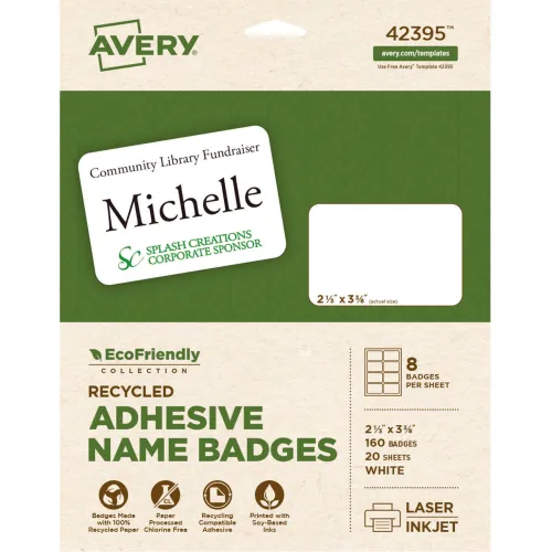 Avery® EcoFriendly Name Badge Labels, 2-1/3" x 3-3/8, White, 160/Box