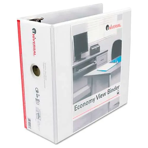 Universal® Economy D-Ring Vinyl View Binder, 5" Capacity, White